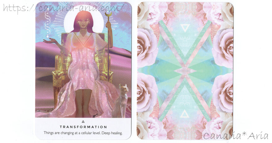この「Transformation(変容)」のカードは、今のあなたが細胞レベルで変化し、生まれ変わりの過程を歩んでいることを伝えてくれています 。